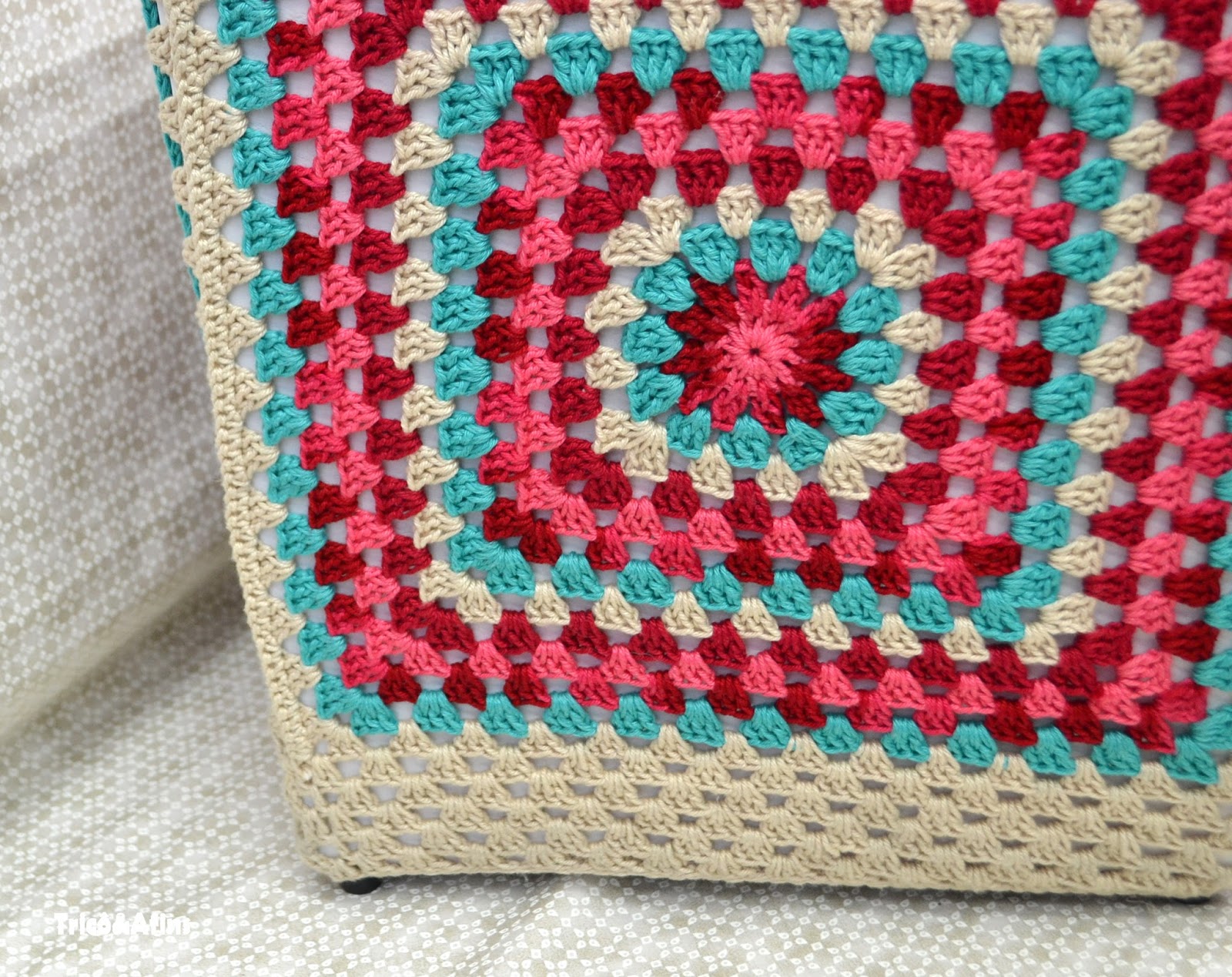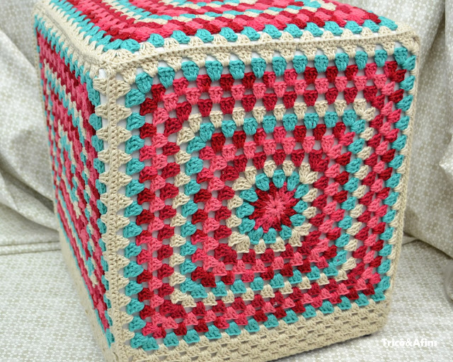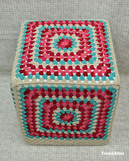 Também fiz um mimo para acompanhar a sacolinha de presente... Pois toda essa fofura também precisa de um cheirinho gostoso: dois pequenos quadradinhos de crochê que unidos acomodaram um sabonetinho perfumado.