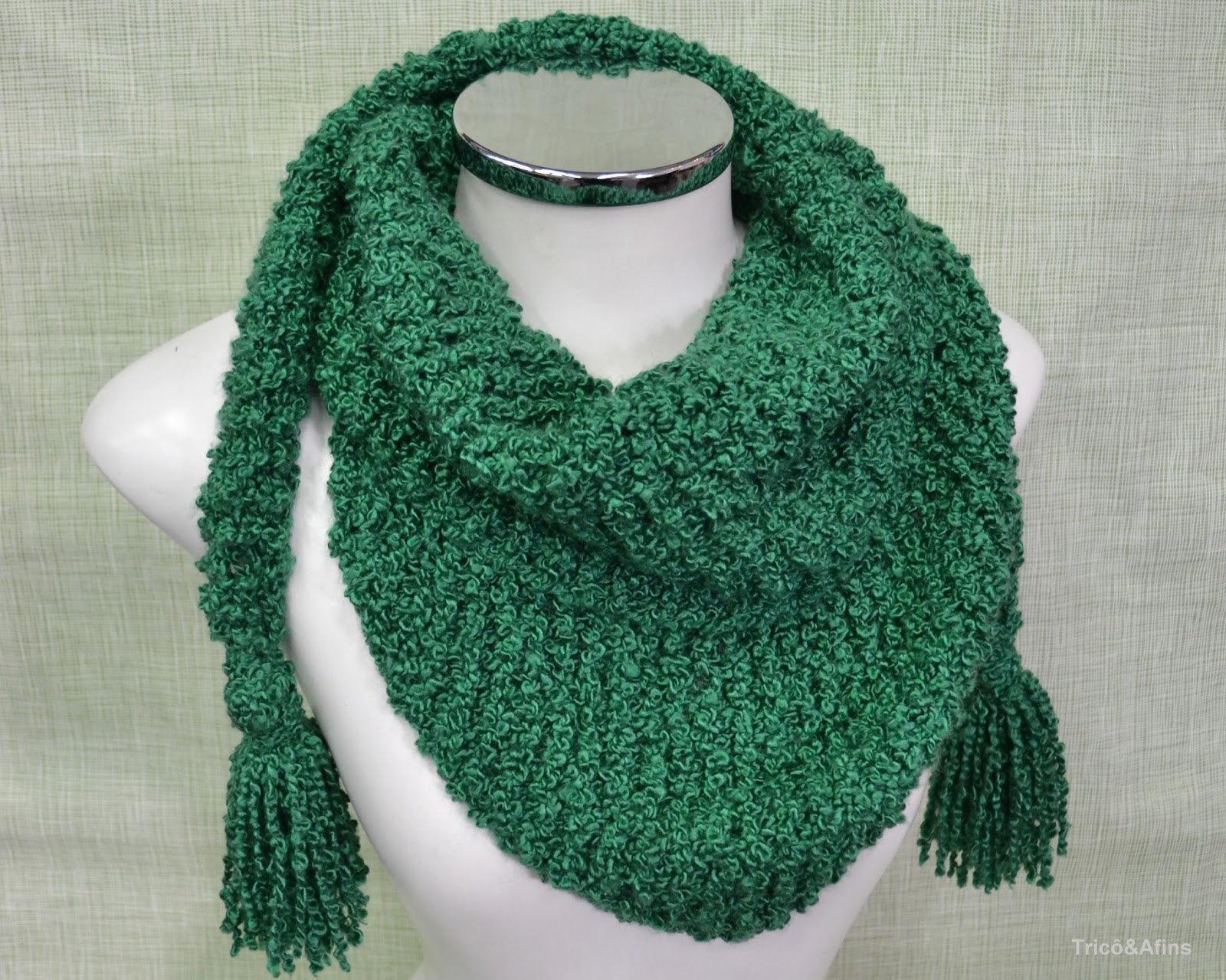 Primeira fase: coloque 3 pontos nas agulha número 10. Faça a primeira carreira em ponto tricô. Da segunda carreira em diante, o esquema é o seguinte: em todo início de carreira faça 1 tricô, 1 laçada e demais pontos em tricô. Certo? Eu disse em todo começo de carreira, ou seja, de avesso e de direito do trabalho, ok? Dessa forma o xale vai ficando um triângulo, como na foto acima. Faça isso até ficar com 100 pontos na agulha. Nessa etapa você estará na metade do seu xale.