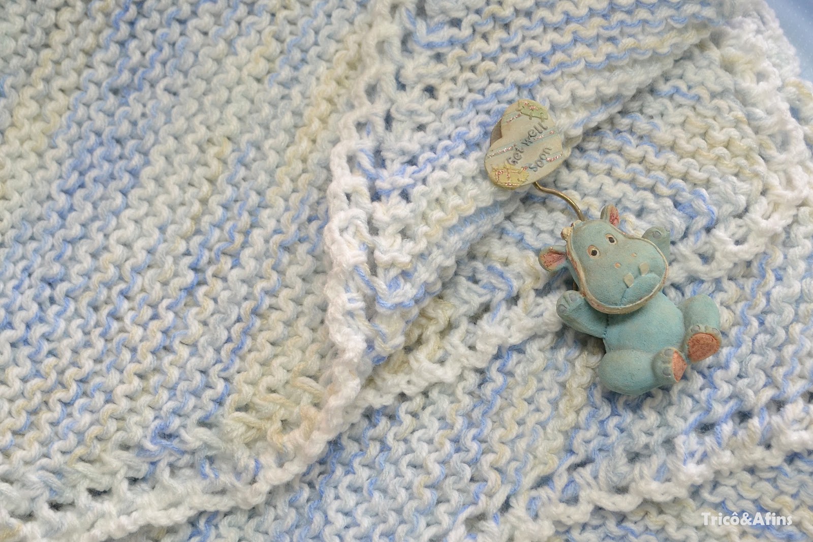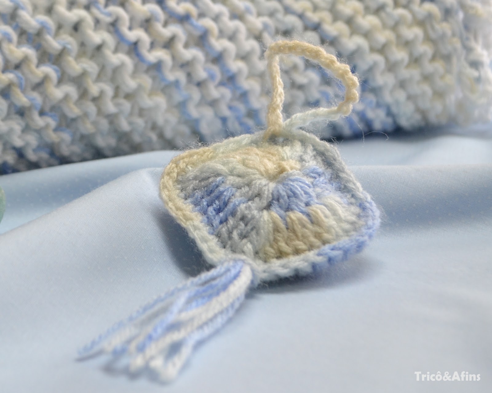 Cor suave para trazer sossego e paz a um pequeninho que acabou de chegar a esse mundo. Cada pontinho foi tecido com uma energia muito boa dentro do coração. Espero que toda a felicidade acompanhe a trajetória do bebê e sua família. Até musiquinha eu cantarolei enquanto tricotava...