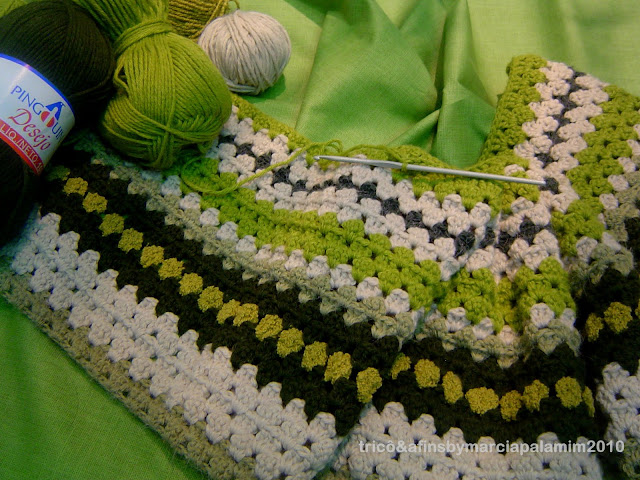 Márcia. A manta está ficando linda com esta combinação de cores. Não desista. Bjos Elaine Carlini