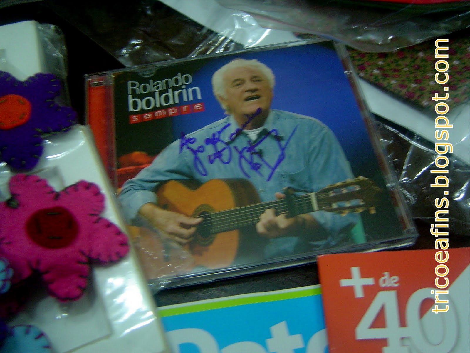 Kits de feltro da Walquits, cachecol com franja de flores de feltro e meu cd do Rolando (o outro foi de presente para meu papito).