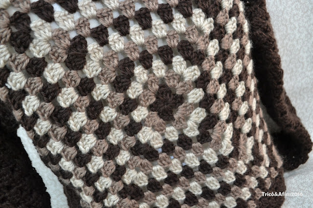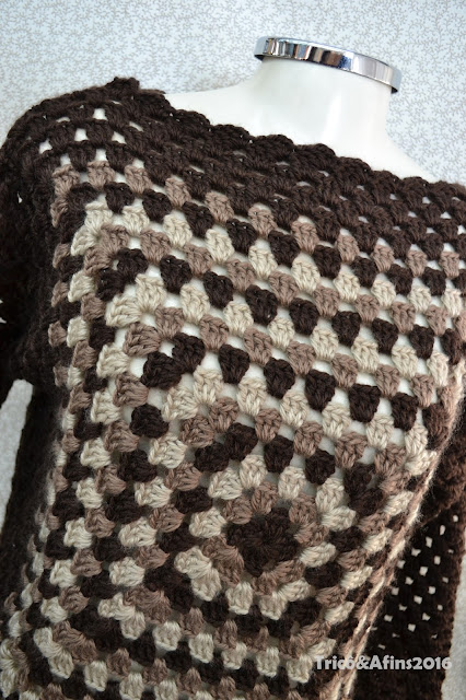 Se você unir esse dois quadrados já vai ter um colete de decote canoa. Certo? Se quiser mangas é só crochetá-las a partir da lateral dos quadrados e aí estará a sua linda blusa. Use a criatividade e escolha uma combinação de cores que lhe agrade. Quer usar sobras de lã e fazer bem colorido? Também dá certo! Quer fazer tudo de uma cor só? Também fica lindo! O meu trabalho foi feito com três tons de Sedificada/Pingouin. Usei 6 novelos de 100 gramas no total do trabalho, sendo 4 novelos marrom café, 1 bege médio e 1 bege claro. Crochetei com agulha número 4,5.